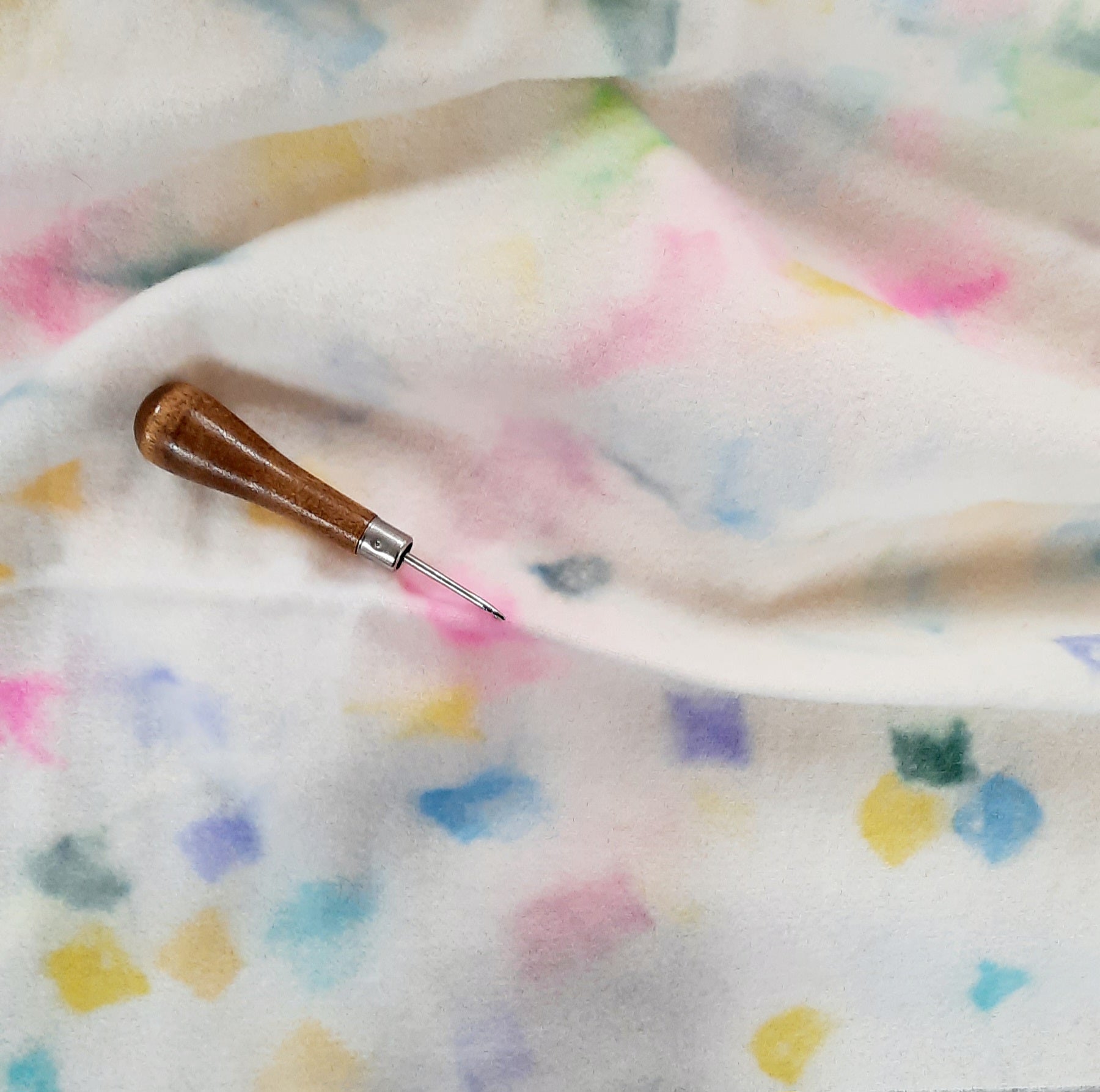 Wool is the traditional fabric for rug hooking because of its durability and natural flame retardancy. We buy the proper weight wool for rug hooking, but it can be also used for applique and home sewing. It is always 100% wool. from the best suppliers. For our hand-dyed wool, we use Dorr Mill fabric for the best quality.